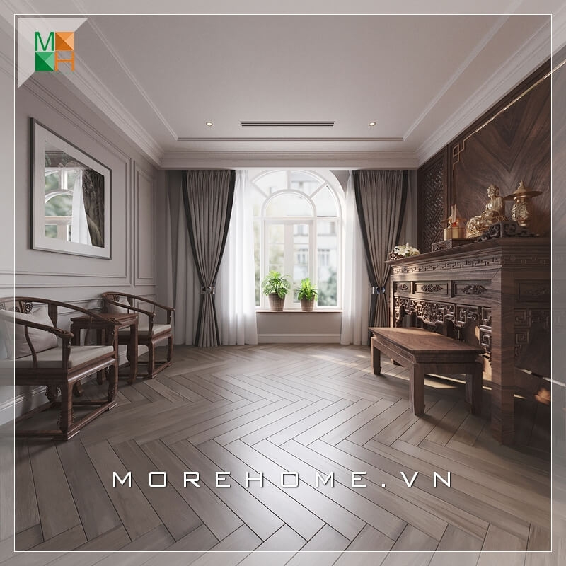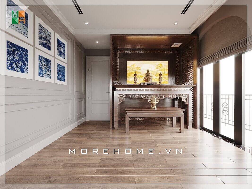 Mẫu thiết kế nội thất phòng thờ biệt thự, nhà phố, chung cư đẹp, sang trọng nhưng vẫn không làm mất đi vẻ trang nghiêm bản chất của nơi thờ phụng.