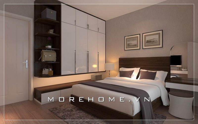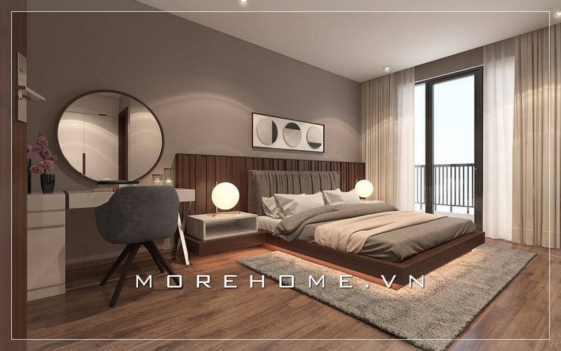 Giường ngủ chung cư hiện đại, được đặt chính giữa căn phòng mang lại cảm giác cân bằng và đảm bảo cho sự nghỉ ngơi được thoải mái hơn