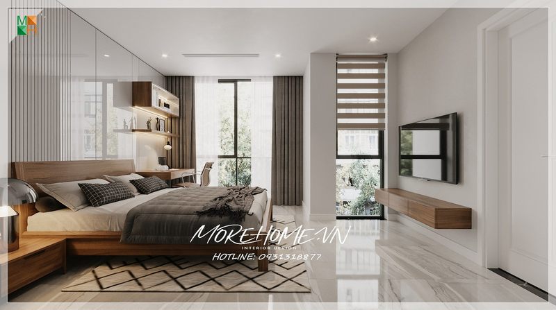 Kệ tivi cũng là một thiết kế nội thất tạo nên độ sang trọng và tiện nghi cho căn phòng ngủ trở nên tinh tế hơn bao giờ hết.