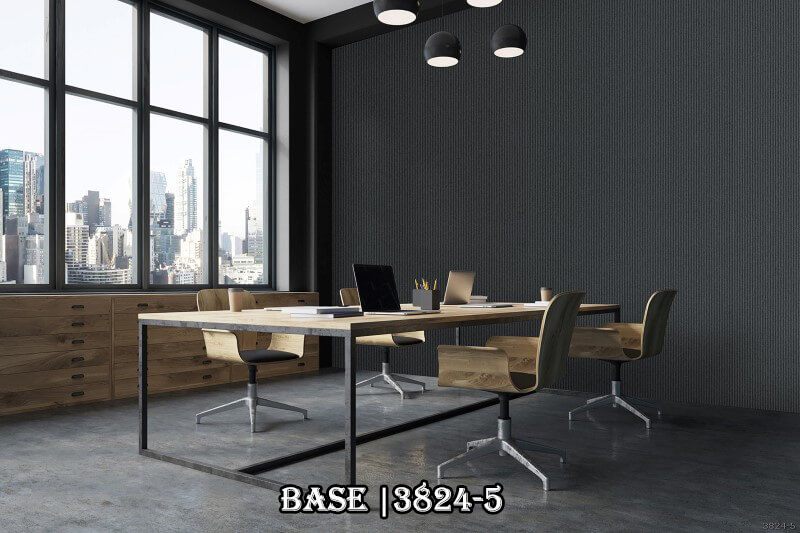 Mẫu giấy dán tường sọc dọc màu xám đậm, tạo điểm nhấn cho phòng làm việc của bạn.