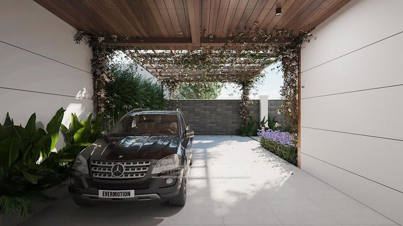 Khu vực để xe được thiết kế để phục vụ nhà biệt thự.