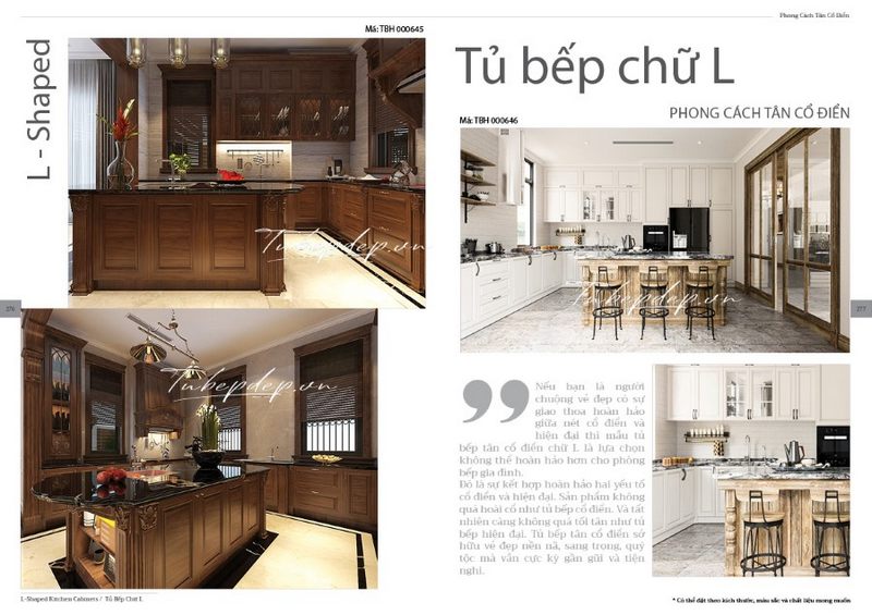 Hình ảnh các mẫu tủ bếp chữ L phong cách tân cổ điển đẹp ấn tượng dành cho nhà phố, biệt thự được thiết kế bởi các kiến trúc sư hàng đầu.