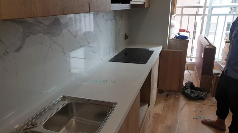 Đá ốp tường bếp, bàn đảo trắng vân mây rất được yêu thích sử dụng trong các thiết kế phòng bếp biệt thự, nhà phố hiện đại vì sự trẻ trung, bền đẹp